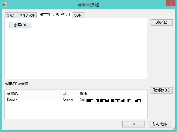 1)ソリューションを作成して、docx.dllを参照で追加。