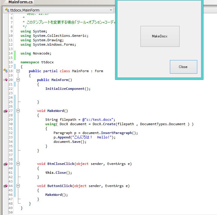 基本は、using Novacode; とusing System.Drawingして、