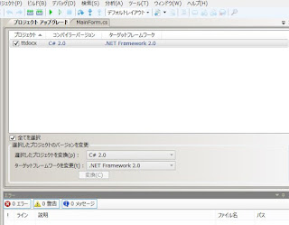 2)SharpDevelopなので、ツールのアップグレードで「C#2.0」に変換。